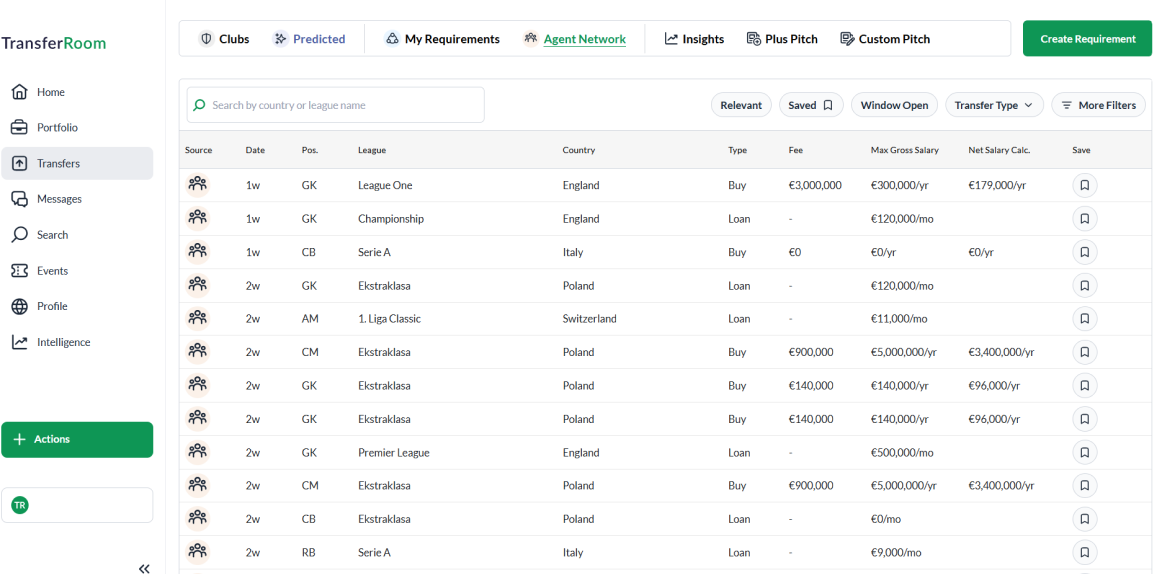 1. To access Agent Network, go to Transfers and click Agent Network. You will be able to see all of the requirements shared with you by Trusted Agencies.