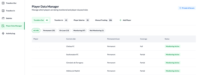 The Player Data Manager (PDM) is your central hub for viewing and editing all Transfers Out, Transfers In, and Player Salary contracts in one place. You can also upload new contracts directly from this page.